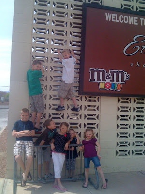 Here are all the Hawkins kids and our kids climbing the walls outside the factory after eating their chocolate!